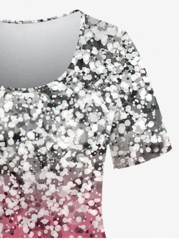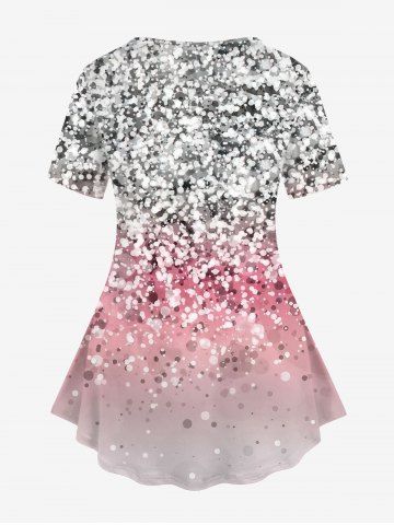 Plus Size Sequins Print Ombre Short Sleeves T-shirt - Light Pink - 1x