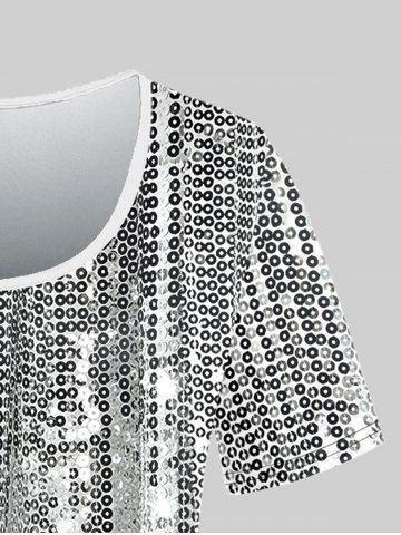 Plus Size 3D Sequins Tassel Print Short Sleeves T-shirt - Silver - 2x