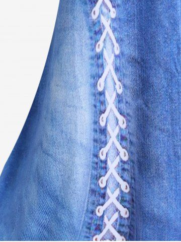 Plus Size Short Sleeve 3D Lace Up Denim Print Tee - Light Blue - 5x | Us 30-32