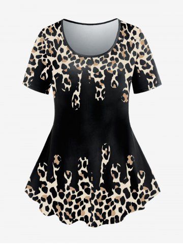 Plus Size Short Sleeve Animal Leopard Print T-shirt - Black - 1x | Us 14-16