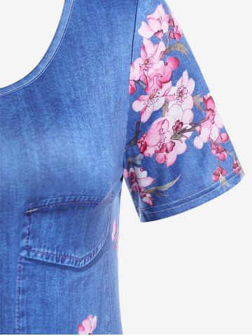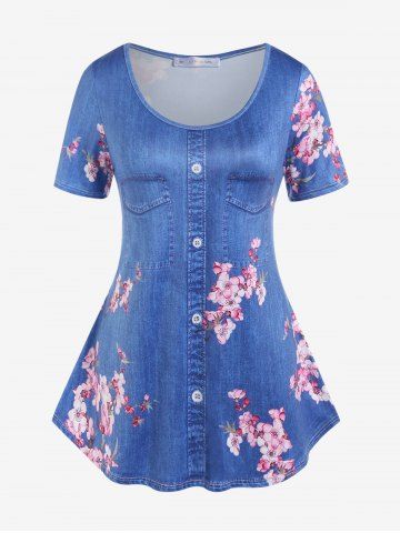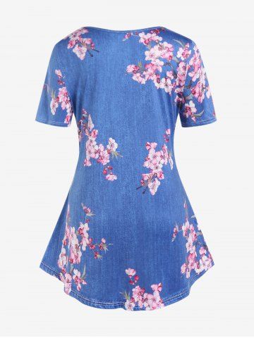 N*****n5Floral 3D Denim Print Tee and High Waist Floral 3D Lace Up Denim Jeggings Plus Size OutfitColor: BLUEOne of my favorite flower sets