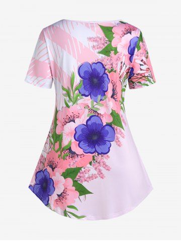 Plus Size Short Sleeve Floral Print T-shirt - Light Pink - M | Us 10