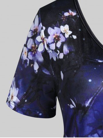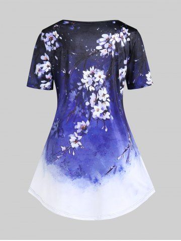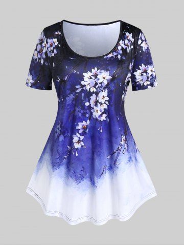 Plus Size Short Sleeve Floral Print Tee - Blue - 2x | Us 18-20