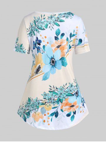 Plus Size Short Sleeve Floral Print Tee - Green - M | Us 10