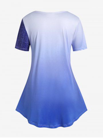 S*****y5Floral Print Ombre Color Tee and Floral 3D Denim Print Cropped Jeggings Plus Size Matching SetColor: BLUEBeautiful colors nice fit. I gave this to my Mom she looks so cute in it. Mom is 73 and doesn't dress up much but sure looked nice in this.