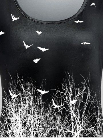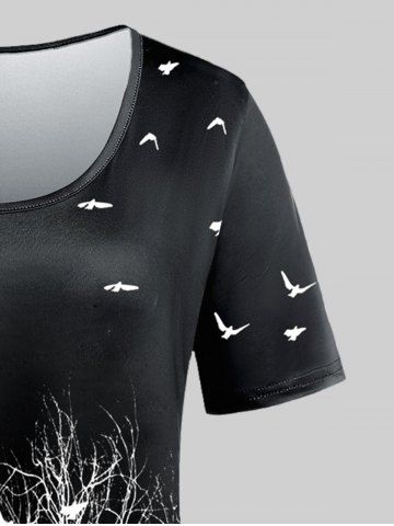 Plus Size Short Sleeve Tree Crow Print Tee - Black - 5x | Us 30-32