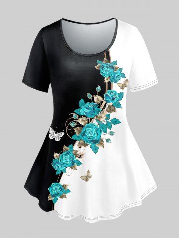 w*****e5Plus Size Floral T-shirtColor: WHITE Size: 2X | US 18-20So cute and comfortable! I love its flowy lines and casual style that is perfect for church or a night at the Pub. Its material is warm and breathable, great for spring or summer wear. Definitely a favorite.