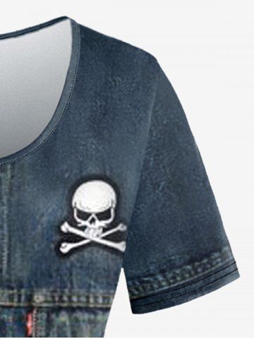 B*****i5Skull Buttons Lace Up Denim 3D Printed T-shirt and Flare Pants Plus Size 70s 80s OutfitColor: DEEP BLUEso so so pretty and comfortable, pant legs are a little too long though