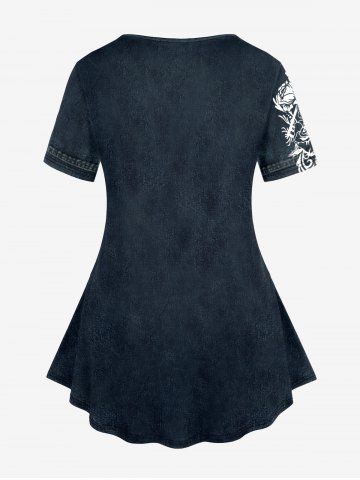 Plus Size Skull Buttons Lace Up Denim 3D Print T-shirt - Deep Blue - 6x