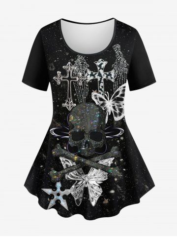 A*****i4Plus Size Skull Cross Butterfly Wings Star Sparkling Sequin Glitter 3D Print T-shirtColor: BLACK Size: 3Xlove it nice and comfortable