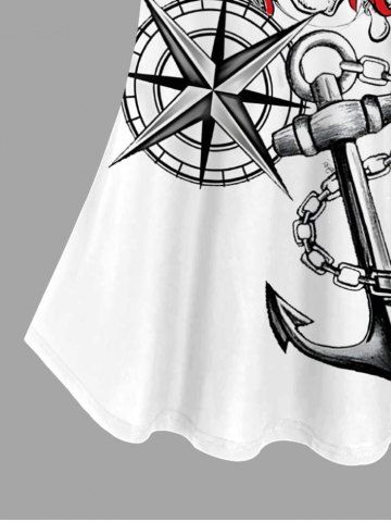 Plus Size Skull Pirate Anchor Chain Steering Wheel Print Hawaii Cruise Cold Shoulder T-shirt - White - L