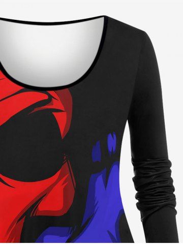 Plus Size Skulls Colorblock Print Long Sleeves T-shirt - Red - S
