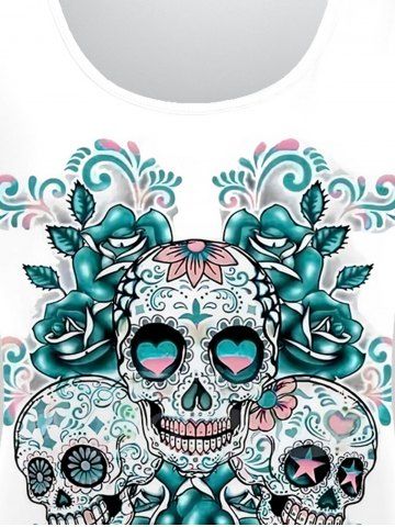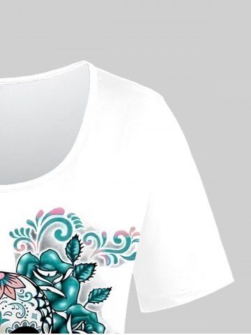 Plus Size Skulls Flower Print Short Sleeves T-shirt - White - 5x