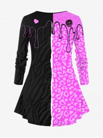 Plus Size Skulls Heart Lip Paint Drop Crown Striped Colorblock Patchwork Letters Print Long Sleeves T-shirt - Light Purple - S