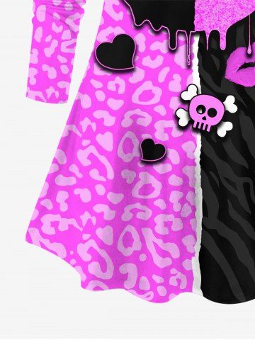 Plus Size Skulls Heart Lip Paint Drop Crown Striped Colorblock Patchwork Letters Print Long Sleeves T-shirt - Light Purple - 3x