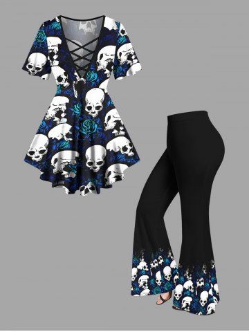 S*****n4Plus Size Skulls Rose Flowers Print Lattice Crisscross T-shirtColor: BLACK Size: LI love these criss cross tops so much that I have bought them in almost every color. very flattering and sexy and make the girls pop if you know what I mean.