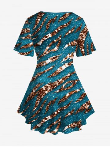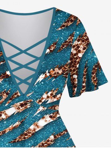 Graphic Tees > Plus Size Snake Skin Sparkling Sequin Glitter 3D Print Lattice Crisscross Flare Sleeve T-shirt