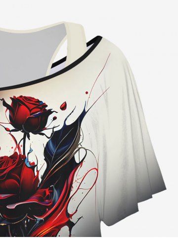 Plus Size Solid Racerback Tank Top and Ink Painting Rose Flower Ombre Print T-shirt Set - Black - Xs