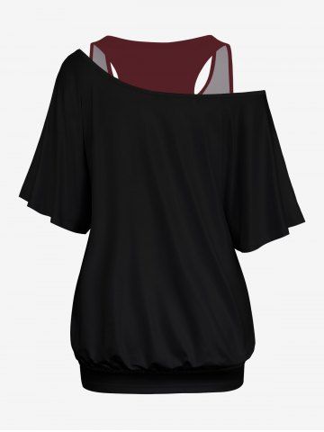 S*****95Solid Tank Top and Skulls Painting Flower Print T-shirt Set and Flocking Lace-up Flare Pants Plus Size OutfitColor: BLACKLove the outfit. The undershirt of the top is a bit tight, but you can't see the tightness once the top shirt is on!
