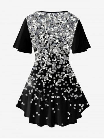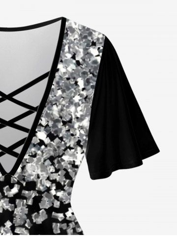 Plus Size Sparkles Glitter Printed Crisscross Short Sleeves Tee - Black - L | Us 12
