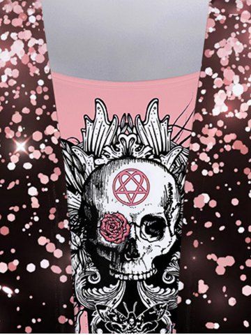 Plus Size Sparkling Sequin Butterfly Skull Flower Print 2 In 1 T-shirt - Light Pink - 2x