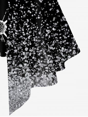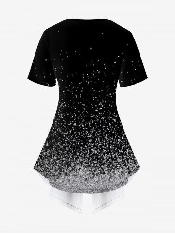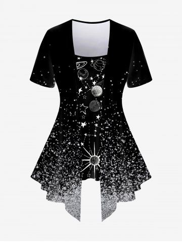 Plus Size Sparkling Sequin Galaxy Moon Sun Star Print 2 In 1 T-shirt - Black - 4x