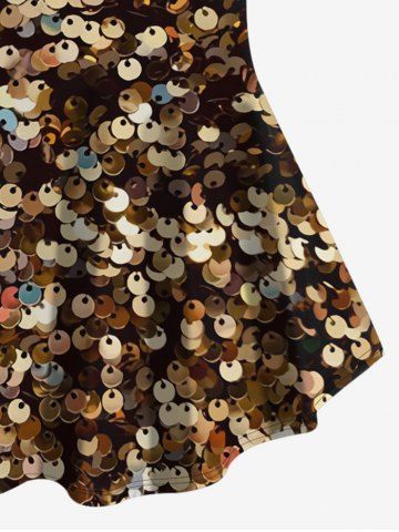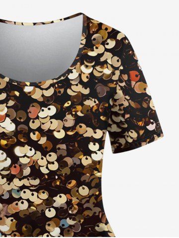 Plus Size Sparkling Sequin Glitter 3D Print T-shirt - Deep Coffee - S
