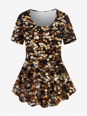Plus Size Sparkling Sequin Glitter 3D Print T-shirt - Deep Coffee - 1x