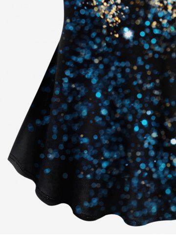 Plus Size Sparkling Sequin Glitter 3D Print T-shirt - Black - 1x