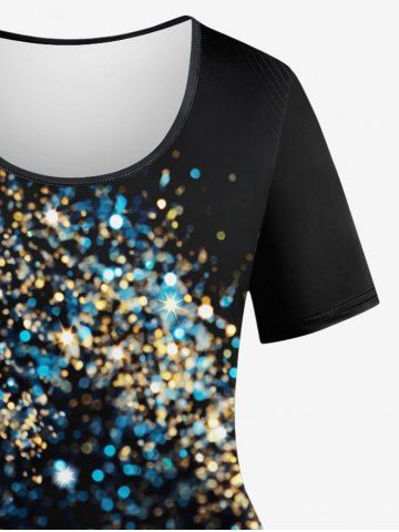 Plus Size Sparkling Sequin Glitter 3D Print T-shirt - Black - 4x