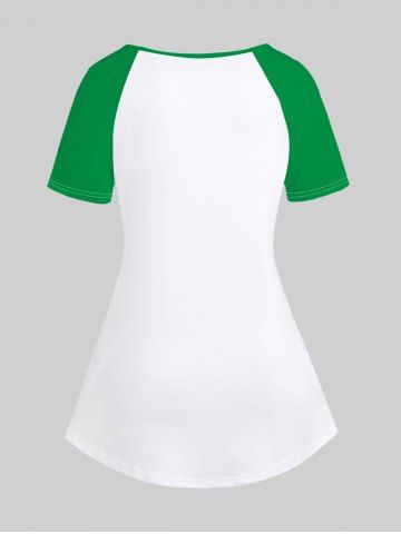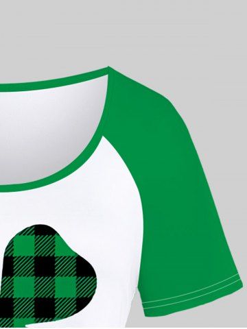 Plus Size St Patrick's Day Clover Plaid Raglan Sleeves Tee - Green - 3x | Us 22-24