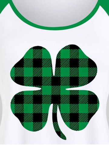 Graphic Tees > Plus Size St Patrick's Day Clover Plaid Raglan Sleeves Tee