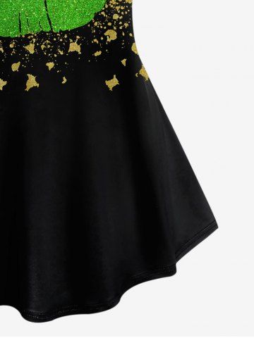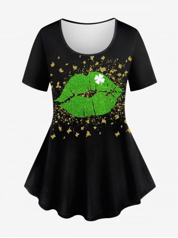 Plus Size St. Patrick's Day Leaf Clover Lip Paint Splatter Print T-shirt - Black - 3x