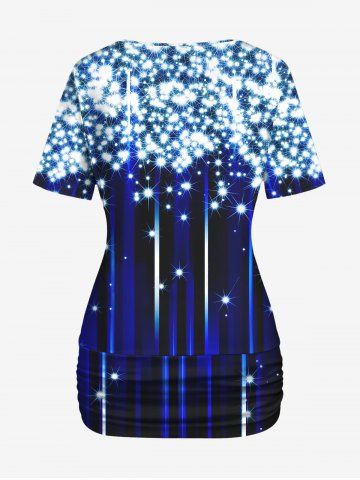Plus Size Star Glitter Light Beam 3D Print Cowl Neck T-shirt - Blue - S