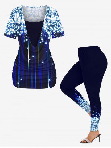 Plus Size Star Glitter Light Beam 3D Print Cowl Neck T-shirt - Blue - L