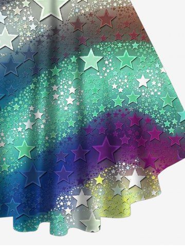 Graphic Tees > Plus Size Star Rainbow Colorblock Glitter 3D Print Lattice Crisscross Flare Sleeve T-shirt