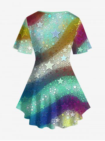 Graphic Tees > Plus Size Star Rainbow Colorblock Glitter 3D Print Lattice Crisscross Flare Sleeve T-shirt