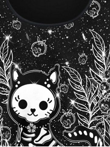 Plus Size Stars Skeleton Cat Skulls Flowers Tassel Glitter Sparkling Sequin 3D Print Long Sleeve T-shirt - Black - 5x