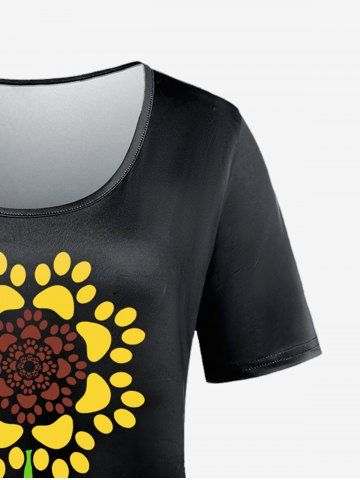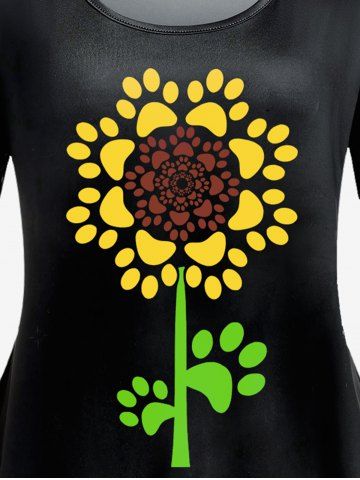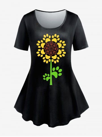 Plus Size Sunflower Paw Print Tee - Black - 1x | Us 14-16