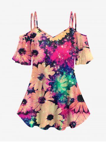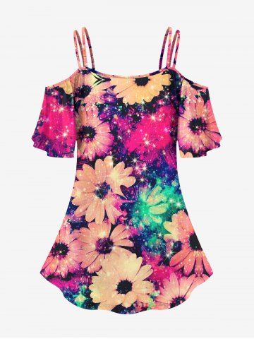 Plus Size Sunflowers Glitter 3D Print Cold Shoulder T-shirt - Multi-a - M