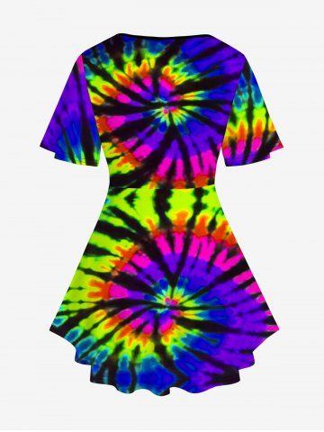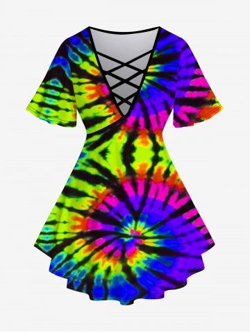 S*****n5Plus Size Tie-Dye Crisscross Short Sleeve T-ShirtColor: MULTI Size: L | US 12This top is true to size the length is perfect and very flattering for my body shape, also very sexy. I've bought them in all the colors and prints.