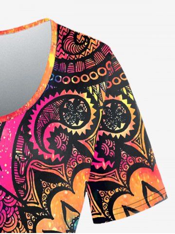 Plus Size Tie Dye Glitter Paisley Print T-shirt