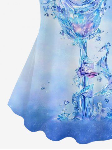 Plus Size Tie Dye Ombre Colorblock Crystal Rose Flower Print T-shirt - Blue - S