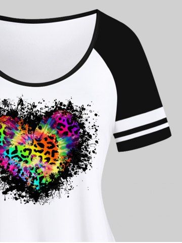 Plus Size Tie Dye Paint Splatter Leopard Heart Print Raglan Sleeve T-shirt - White - 1x