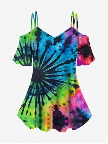 Graphic Tees > Plus Size Tie Dye Print Cold Shoulder T-shirt