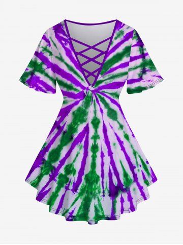 c*****s5Plus Size Tie Dye Printed Crisscross V Neck Short Sleeve T-Shirt and Flare Pants OutfitColor: MULTIThis set I was only able to fall in love with the top which I have ordered more since I got this one. the pants came the wrong size but the site was super helpful on getting a refund for part of the order.