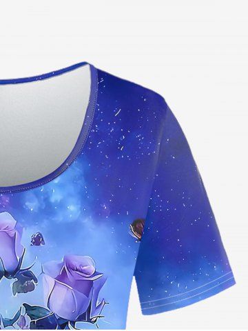 Plus Size Tie Dye Rose Print T-shirt - Blue - Xs | Us 6