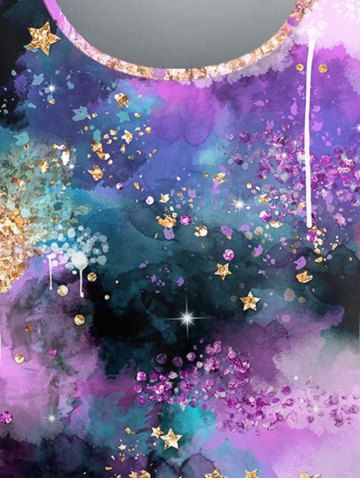 Plus Size Tie Dye Star Sparkling Sequin Print T-shirt - Purple - M