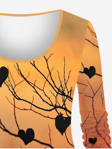 Plus Size Tree Branch Heart Print Valentines Ombre Long Sleeves T-shirt - Coffee - 1x