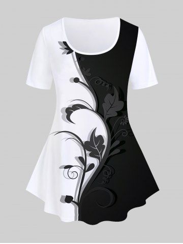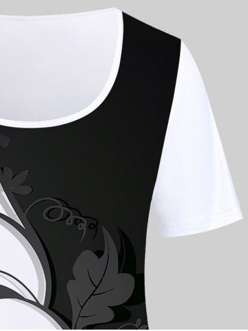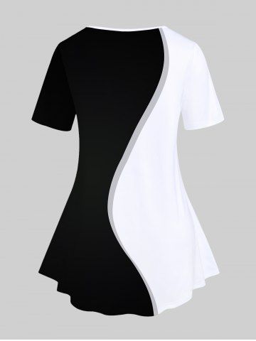 Plus Size Two Tone 3D Printed Short Sleeves Tee - Black - 2x | Us 18-20